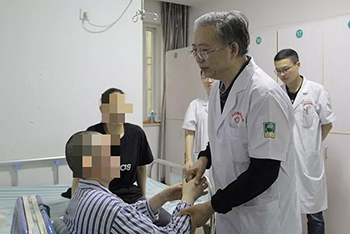 在教学查房过程中,黄教授在主管医生汇报病例后,对患者进行查体和问诊,就疾病的诊疗要点进行了梳理分析,并分享了省级医院的经验。