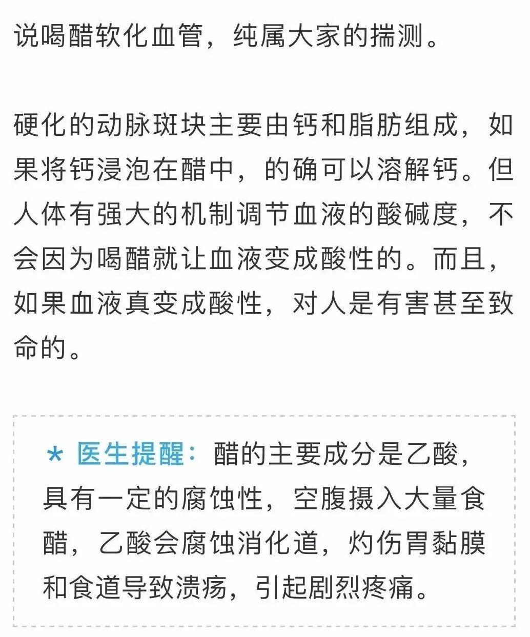 近年来,民间一直流传着“醋能软化血管的说法”。许多人相信,每天喝口醋,或者吃一点醋泡的东西,就可以软化血管、降脂降压。曾经的确有一些动物实验表明,食用醋对降血脂表现出一定好处。