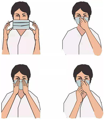 佩戴要严密遮盖口鼻,注意正反和上下,调整鼻夹至贴合面部,其他边缘与皮肤接触越紧密越好。