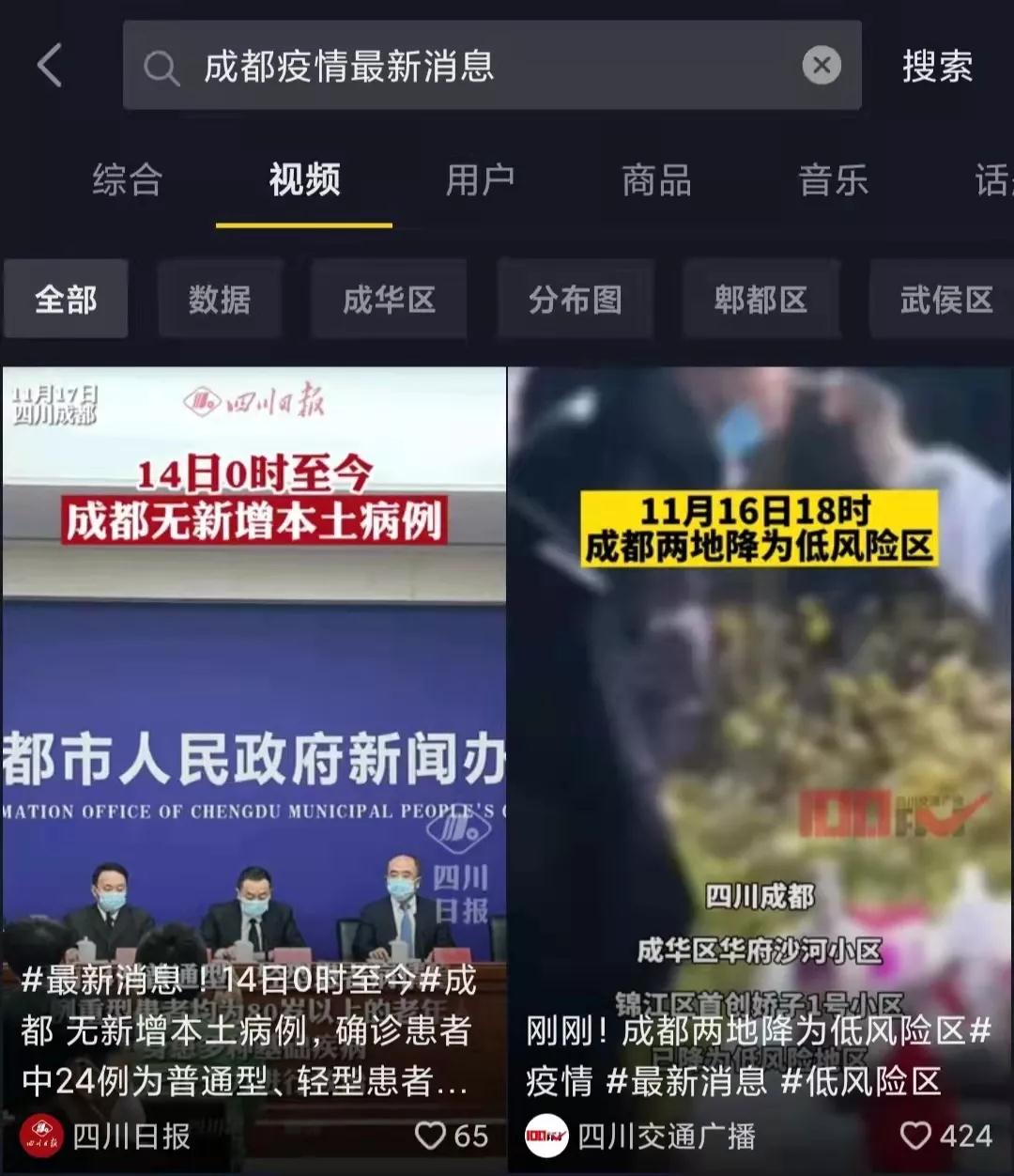11月16日18时,成华区-华府沙河小区、锦江区-娇子1号小区两地降为低风险区,相关封控、管控区全部解除管控。