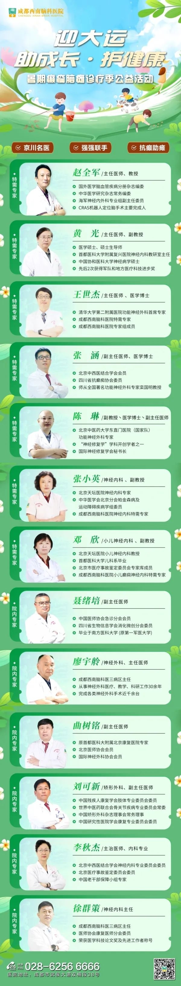 在大运会来临之际,我们联合残疾人福利基金会, 开展本次癫痫脑瘫诊疗季公益活动,每周邀请北京脑科坐诊,实行单病种限价收费,给予每一位癫痫、脑瘫、发育迟缓的患儿实质性的帮助,用爱心帮扶祖国花朵,用医术助力儿童成长,提高患儿及其家庭对癫痫脑瘫的正确认识,树立治疗的信心,让他们早日摆脱疾病的阴影!