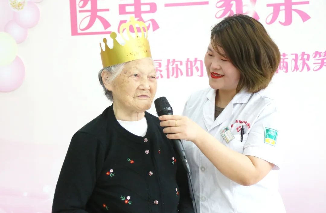 待所有寿星戴上生日帽,胥院长代表院方,向本月过生日的寿星们送上了真挚的慰问和生日祝福。愿他们病魔远离,健康常伴!