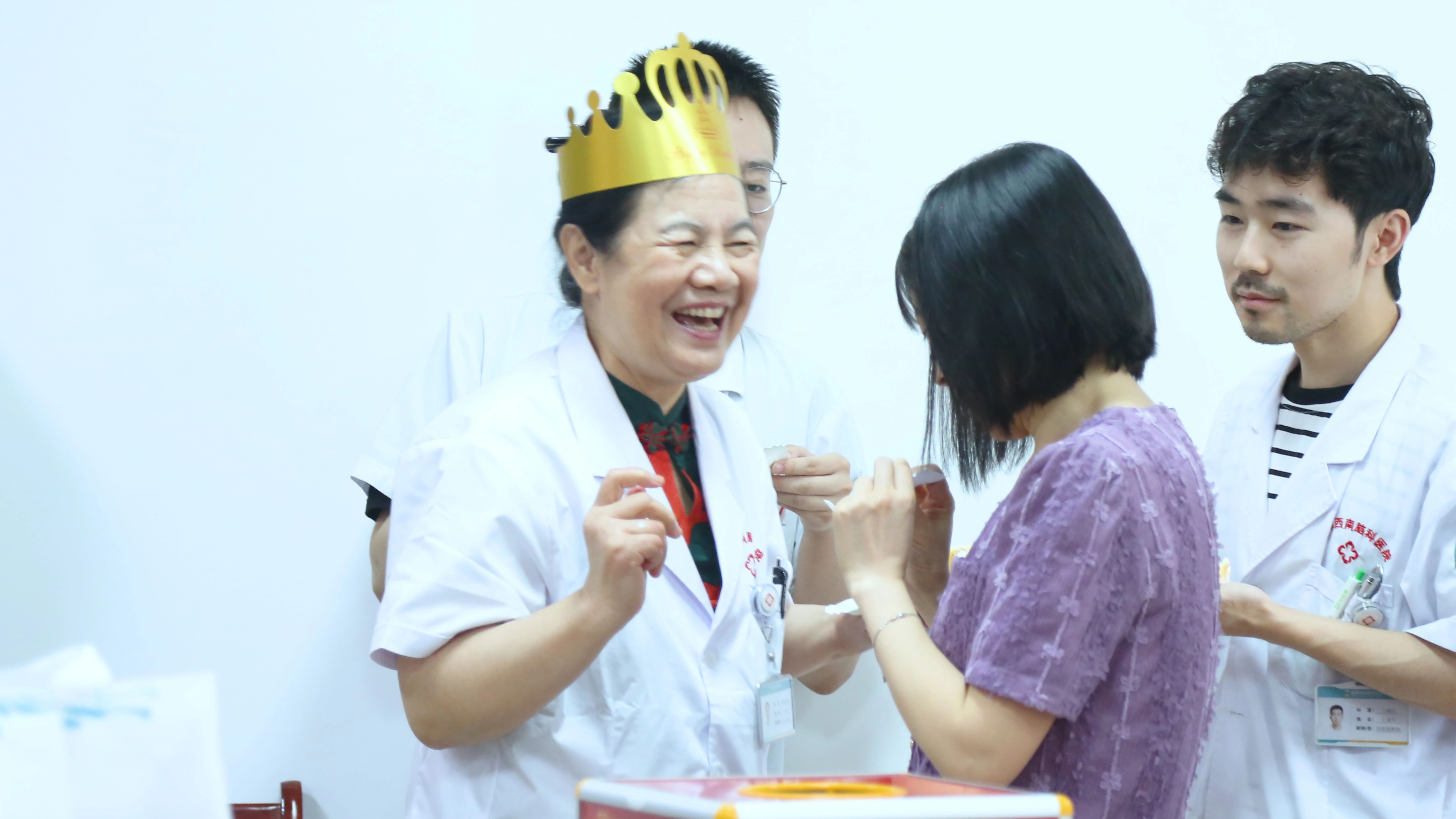 两位院方代表讲话后,生日歌再次响起,推上蛋糕,点上蜡烛,现场齐唱生日快乐歌,医患间的温情在此刻油然而生。