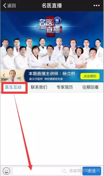 第三步:在观看直播的同时,你可以点击左侧“医生互动”菜单,输入你想要咨询的问题,即可与直播医生进行互动。