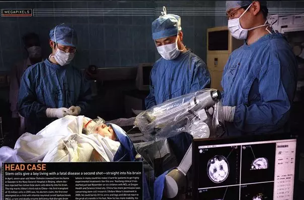 脑立体定向仪+神经调控技术,是借助目前医学界的航天机器人手臂,运用微侵袭神经外科技术(CT脑立体定向、神经导航结合显微手术等)进行病灶靶点定位,建立与靶点对应的三维坐标体系快速定位脑内病变的神经细胞核团或神经纤维,采用该机器人手臂的精密传感器进行专业分析,将仅0.3mm的射频消融针探入脑部病灶,实施病灶损毁、神经细胞核团或神经纤维功能调控;同时,机器人手臂还会将正常功能的T神经细胞准确无误的植入受损病灶,激活和修复该区域的神经细胞,从而修复、激活已经受损的大脑皮层,恢复大脑神经细胞功能的再平衡,不仅治疗了脑病,且还让患者康复到了接近正常人的水平。