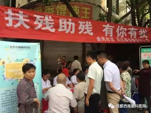 在“5.21”助残日即将来临之际,金凤社区联合天亿综合服务中心于2017年5月19日上午,邀请“向阳花开公益行动”义诊团成都西南脑科医院的医务工作者,在辖区金凤街开展脑瘫儿关爱、帕金森、老年痴呆前期诊断等助残活动。此次活动旨在呼吁社会各界关爱残疾人尤其是脑瘫儿群体,给予他们包容、爱与帮助;呼吁关注脑健康、认识脑科学,掌握帕金森、老年痴呆等常见脑科疾病的早期症状,做到早预防、早发现、早控制。