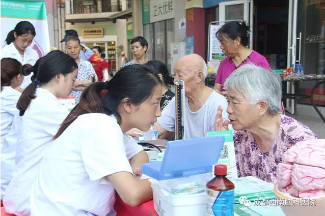 成都西南脑科医院的医护人员已经先后去到多个社区进行了公益义诊活动,这次义诊主要目的是在“文化进社区”同时,为社区的老人们进行了老年病的知识普及和义诊,提高他们的健康意识,为大家传播老年痴呆、帕金森、脑萎缩等老年病的相关知识。让更多的老年人加强脑部疾病的预防知识,意识到这种疾病的严重性。