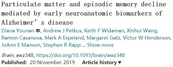此外,一项发表于《大脑》(Brain)上的近千人10年追踪先是:长期暴露于PM2.5污染,可能导致大脑萎缩和记忆衰退。其中暴露于高度污染空气的女性记忆衰退更明显,而且出现了类似阿尔茨海默病表现的大脑萎缩。