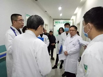 原来是成都西南脑科医院一病区主任、神经外科贾映海教授因地制宜、争分夺秒在医院走廊为查房的医护人员及过往的典型患者讲起来了“典型发作类型及发作特点”,受到在场医护人员及过往患者的好评。