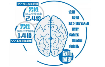 《2017年中国卒中防治报告》显示,我国40岁以上人群现患和曾患脑卒中人数为1242万,患者年轻化趋势明显。一些特定疾病,如高血压出血 、脑动静脉畸形、烟雾病、 脑动脉瘤、静脉系统疾病等有可能导致突发脑卒中;此外,肥胖、熬夜、酗酒、抽烟、不规范的剧烈运动等也是导致年轻人患脑卒中的重要原因。