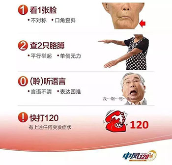 神经科提醒,人们都要学会脑卒中早期发生的“120识别口诀”: