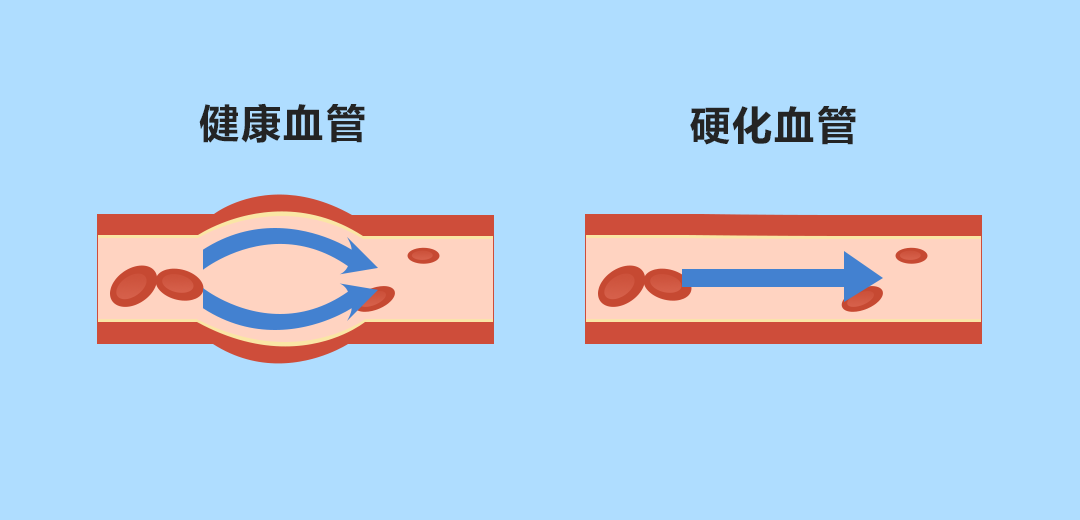 然而就如水管会老化、结垢、生锈一样,血管也会硬化,使得血管壁变厚、失去弹性,输送血液的能力有可能受到影响,与此同时,与动脉僵硬相关的动脉粥样硬化病变的出现导致动脉血管管腔发生狭窄。