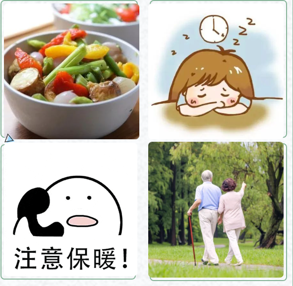 夏秋交替,早晚温差明显,身体的血管收缩和舒张变化较大,血压容易波动,是心梗、脑梗等疾病的高发期。有高血压、糖尿病等基础疾病的患者一定要注意控制血糖血压,不要让自己受到冷刺激。