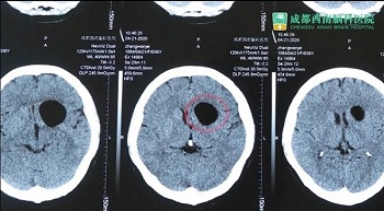 患者辗转多院后来到我院,经门诊医生进行流行病史调查无新型冠状病毒肺炎地区旅游集居住史,无新型冠状病毒肺炎密切接触史,无发热、乏力、咳嗽及腹泻症状,门诊血常规、CRP、 胸部cT检查,排除新冠状病毒肺炎,门诊以“左侧前颅底肿瘤”收入我科。之后在我院进行了肿瘤切除手术。