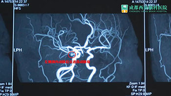 晏女士在医生的建议下,转入我院寻求黄光富教授的治疗。经检查,发现她左侧眼睑下垂,不能自己睁开。扒开眼皮,左瞳孔放大,对光反射消失,眼球偏外,且不能正常转动。头颅MRA检查后,确诊为左侧颈内动脉后交通段动脉瘤,拟行动脉瘤夹闭手术。