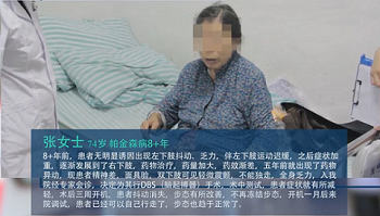 8年前,张女士出现了左下肢抖动、乏力,伴随左下肢运动迟缓,之后症状加重,逐渐发展到了右下肢。一开始使用药物在治疗,后来,逐渐不起作用了,即便加大药量、药效也越来越差。在5年前就出现了药物异动。