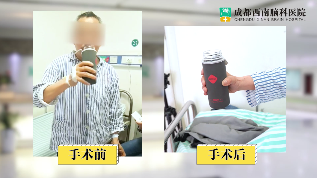 陈先生回忆,手术刚开始的时候还有点害怕,在医生的安慰和指导下,配合医生做动作,慢慢的在手术台上就不抖了。他说:“儿女他们挣钱也很辛苦,就想通过手术把病治疗,能在家里好好的。做了手术出来胜利了,高兴。手脚都不抖了,吃饭、走路都没问题了。之前(因为右手抖)吃饭都用左手吃,现在两只手都能吃饭了。”