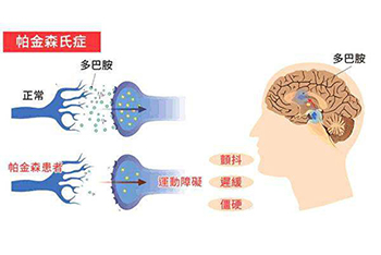 帕金森病是一种常见的神经功能障碍疾病,患者男性略多于女性。人脑的中脑部位有一群神经细胞叫黑质神经元,它们通过合成一种“多巴胺”的神经递质,对大脑的运动功能进行调控。当这些黑质神经元变性死亡达80%以上时,就会出现帕金森病的症状。