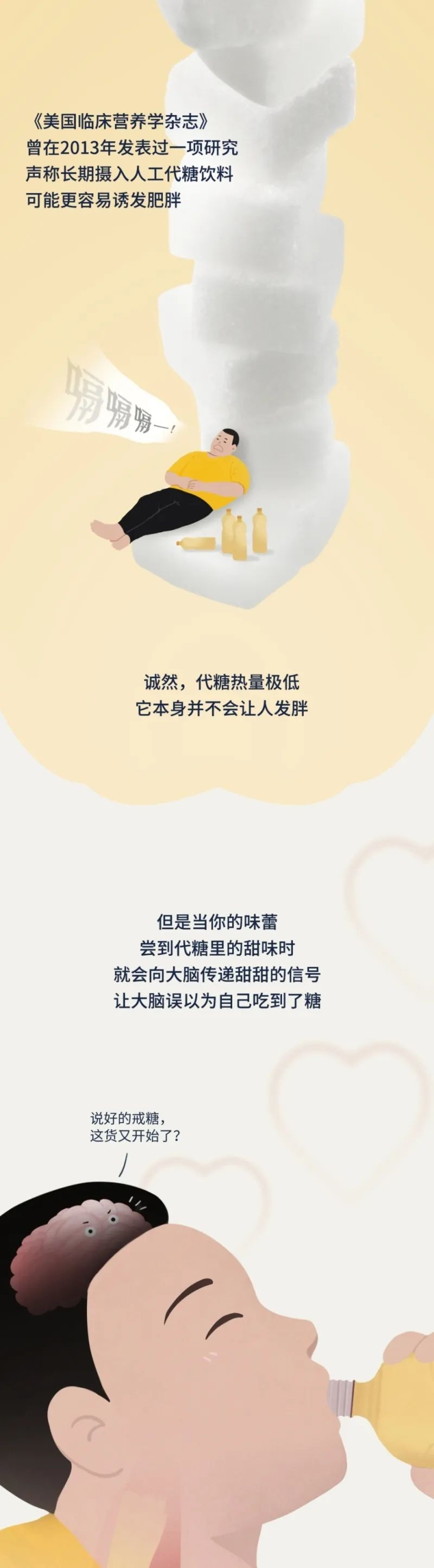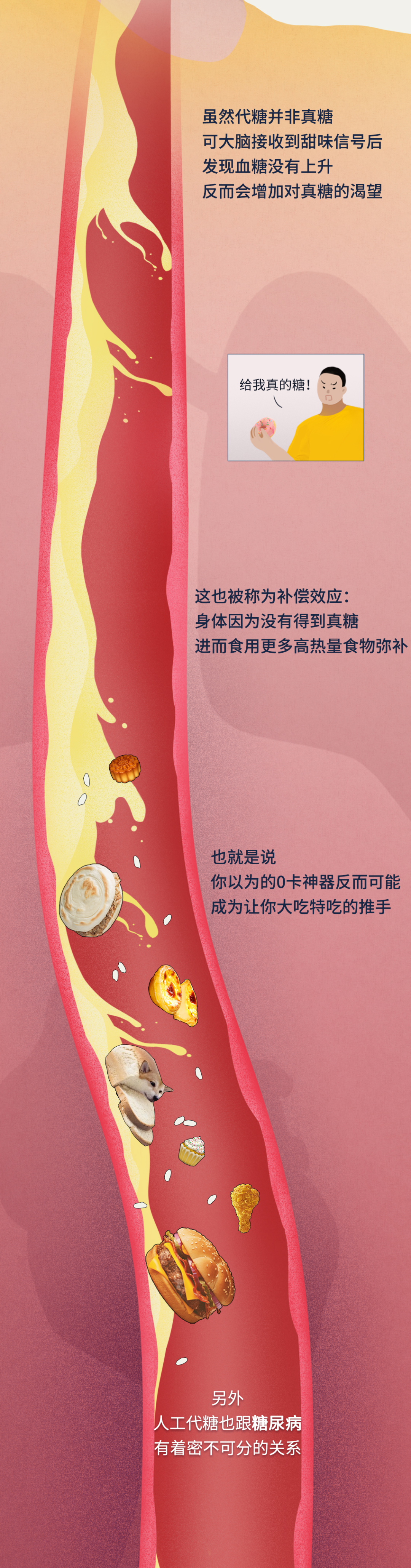 正如美国犹他大学营养学和医学信息硕士陈晓芮所说:“ 所有甜味剂的原理都是在欺骗大脑,而大脑接收到甜味信号后,却发现血糖没有上升,反而会增加对真糖的渴望。”