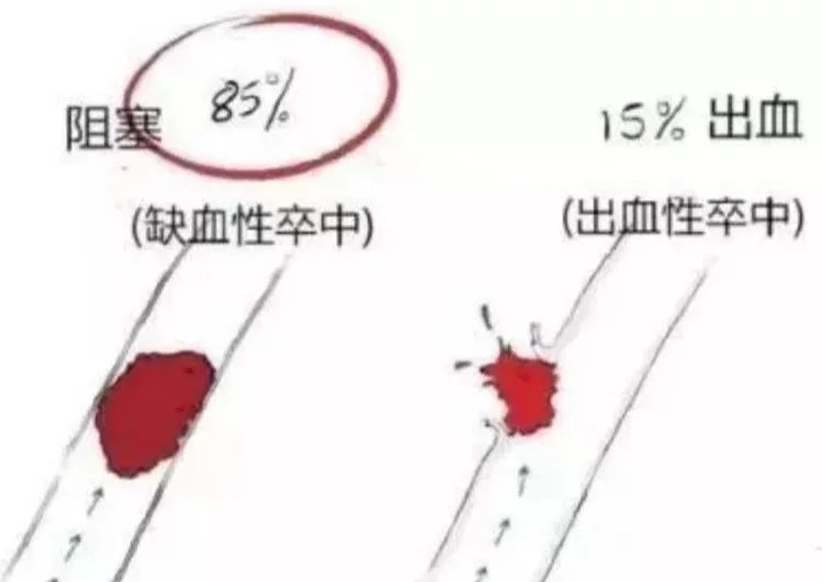 我们老百姓常说的中风,学名叫脑卒中,简单来说就是供应脑组织的血管出了问题。如果把脑血管比作水管,堵了就是缺血性脑卒中,也就是我们常说的脑梗,占了中风的85%;裂了就是出血性脑卒中,就是我们常说的脑溢血。