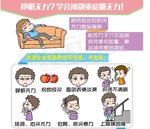 4、其他疾病因素:内分泌障碍、甲状腺功能亢进、自身免疫病、多发性肌炎、皮肌炎、红斑狼疮等在临床中都有可能出现重症肌无力。